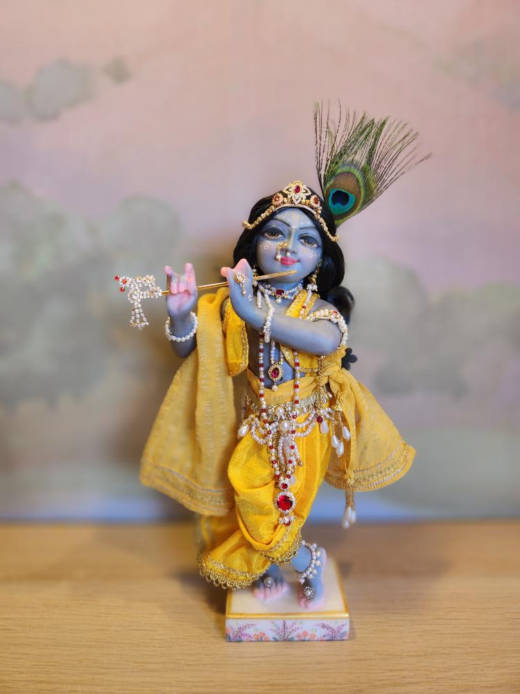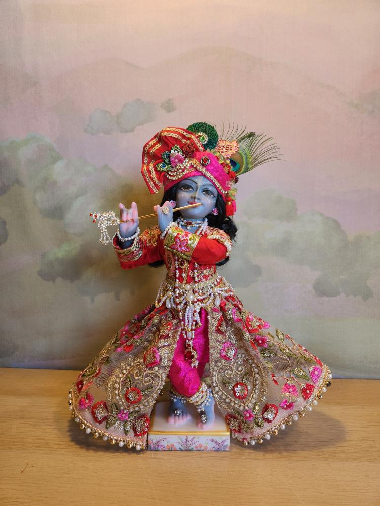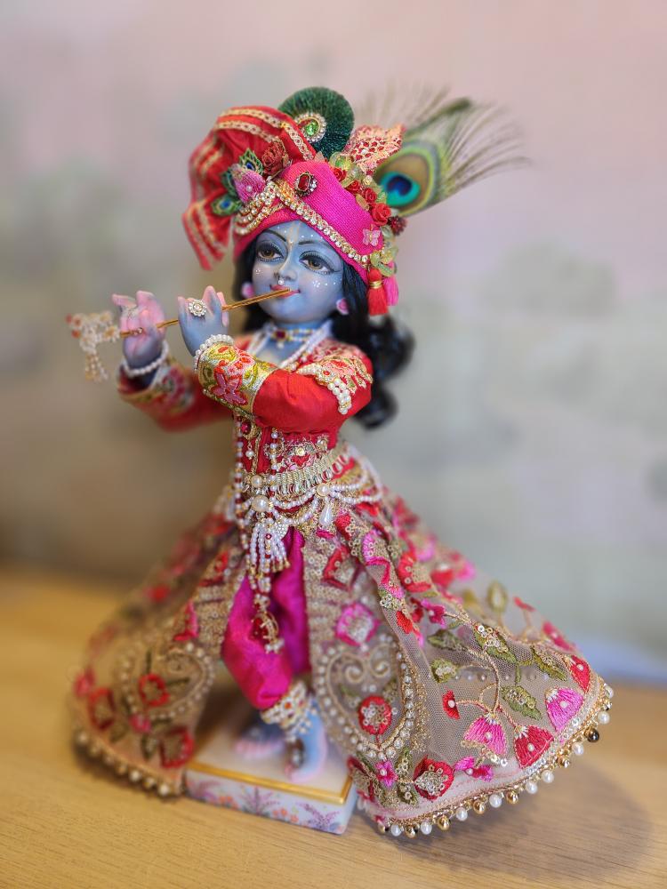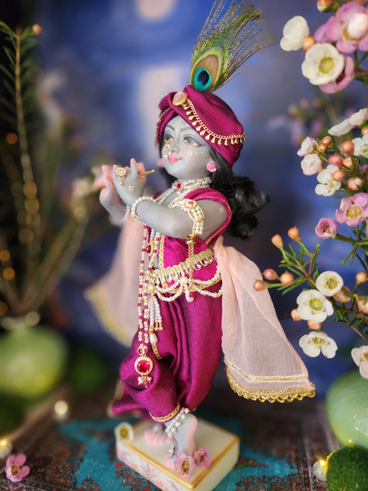 Inspired by artistic traditions that illuminate Krishna’s beauty, Kanu arrives with a complete wardrobe of five gorgeous outfits and a full set of intricate jewelry. This curated collection is specially designed for endless creativity; the vibrant pieces can be mixed and matched to create countless unique looks for any occasion, from daily worship to special celebrations.