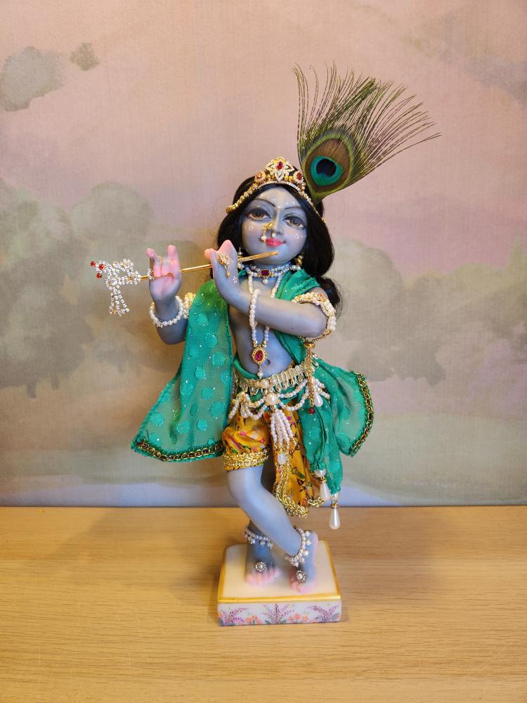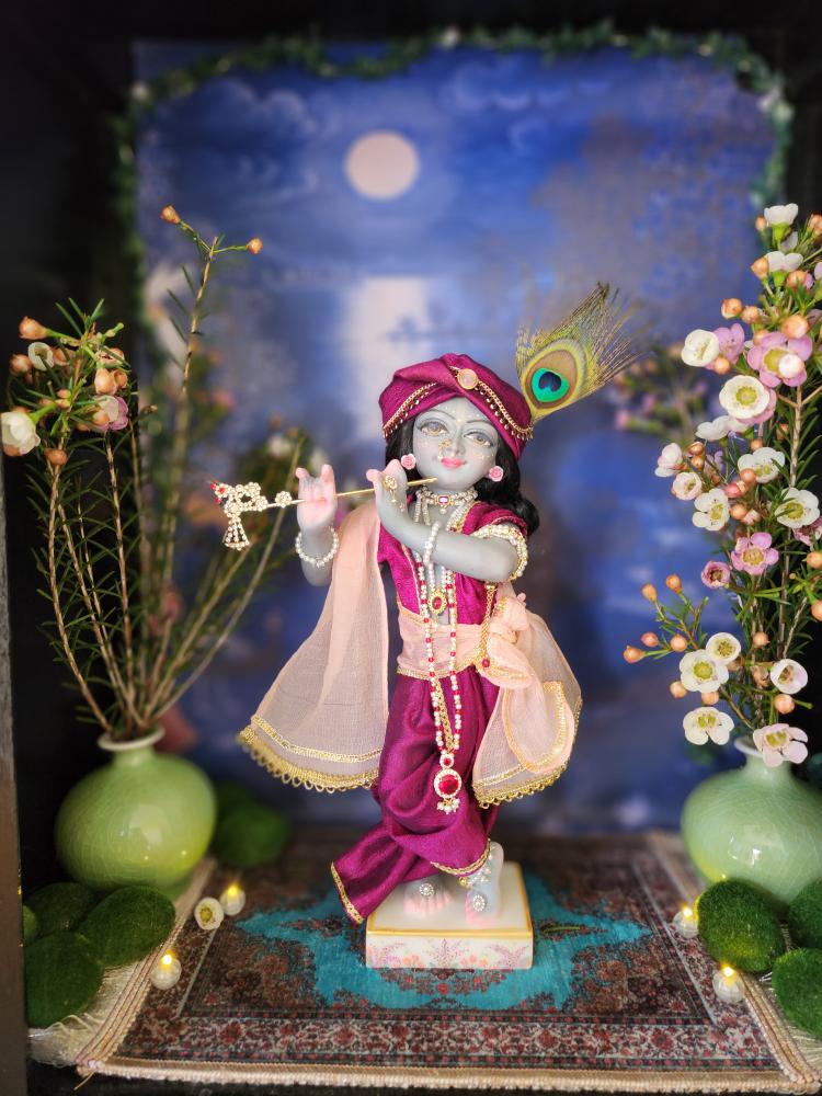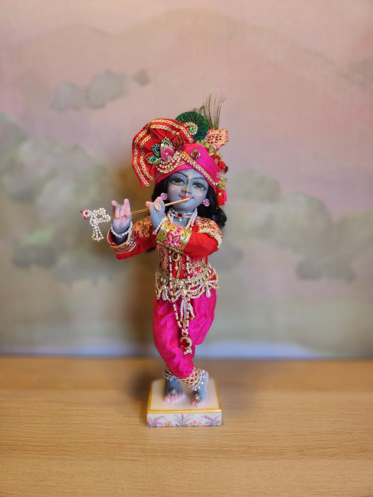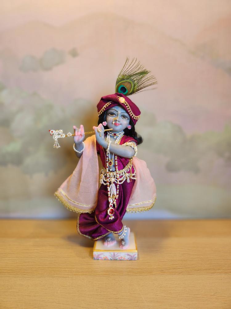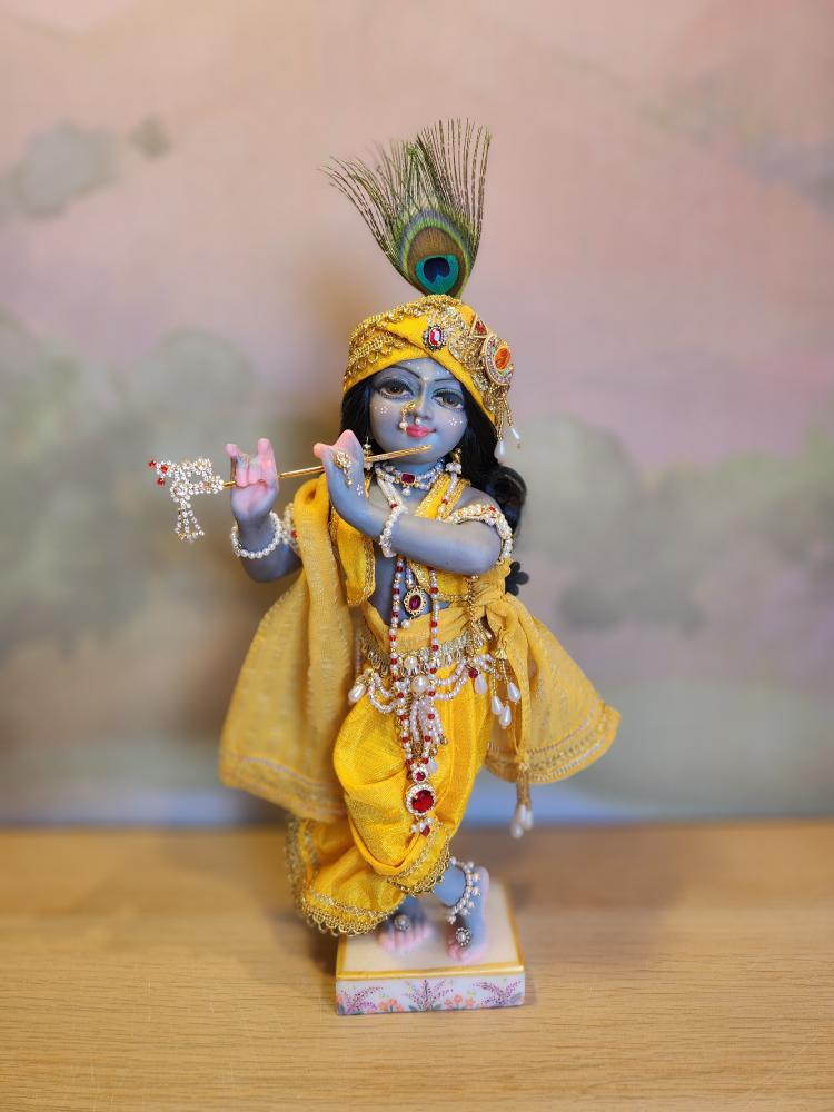 Inspired by artistic traditions that illuminate Krishna’s beauty, Kanu arrives with a complete wardrobe of five gorgeous outfits and a full set of intricate jewelry. This curated collection is specially designed for endless creativity; the vibrant pieces can be mixed and matched to create countless unique looks for any occasion, from daily worship to special celebrations.