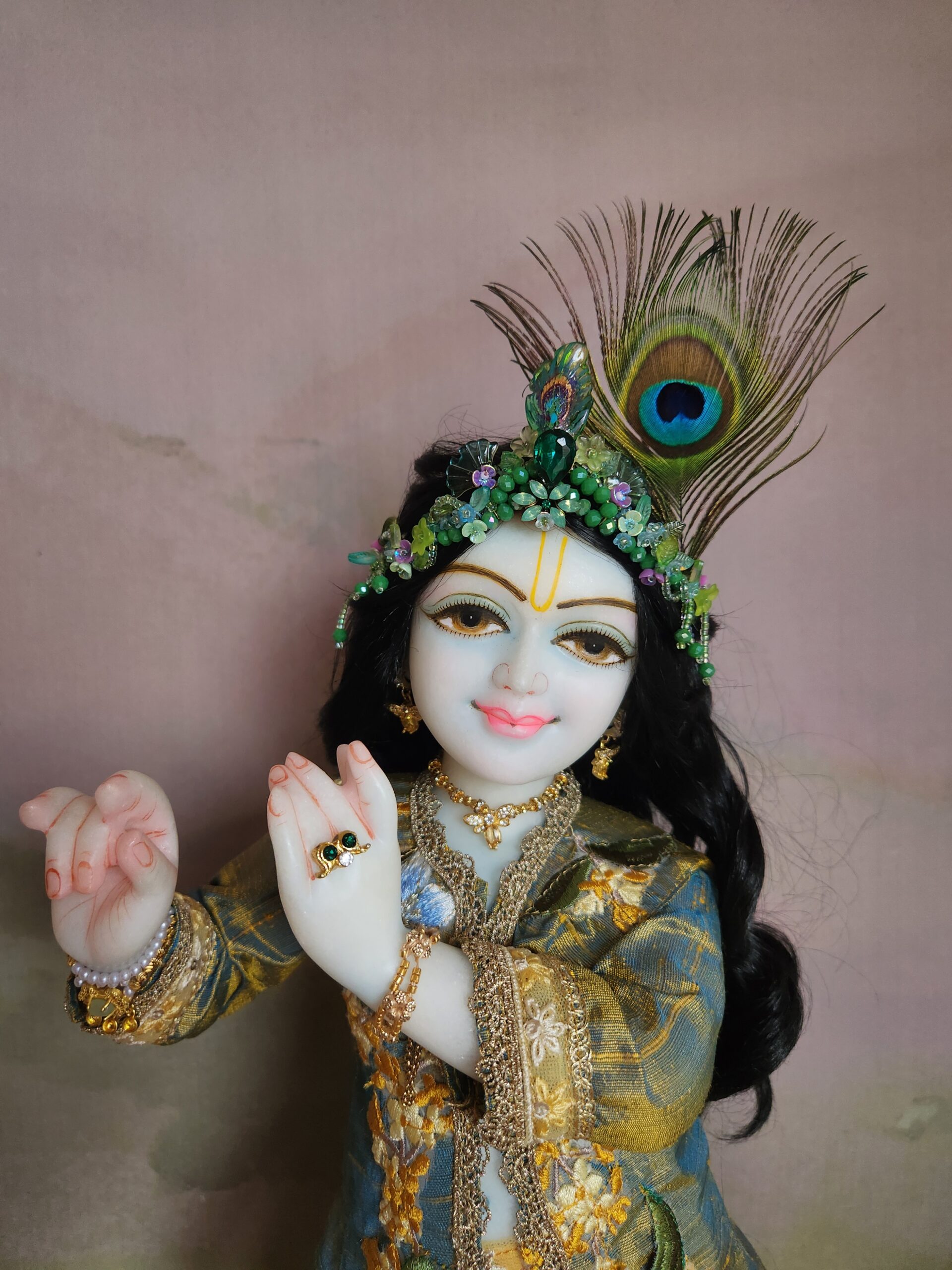 • The Flute-Player’s Fit: Having dressed many Deities, I ensure the necklace drapes with supple grace. This allows Him to hold His flute and wear His silken garments without the jewelry feeling bulky or restrictive.