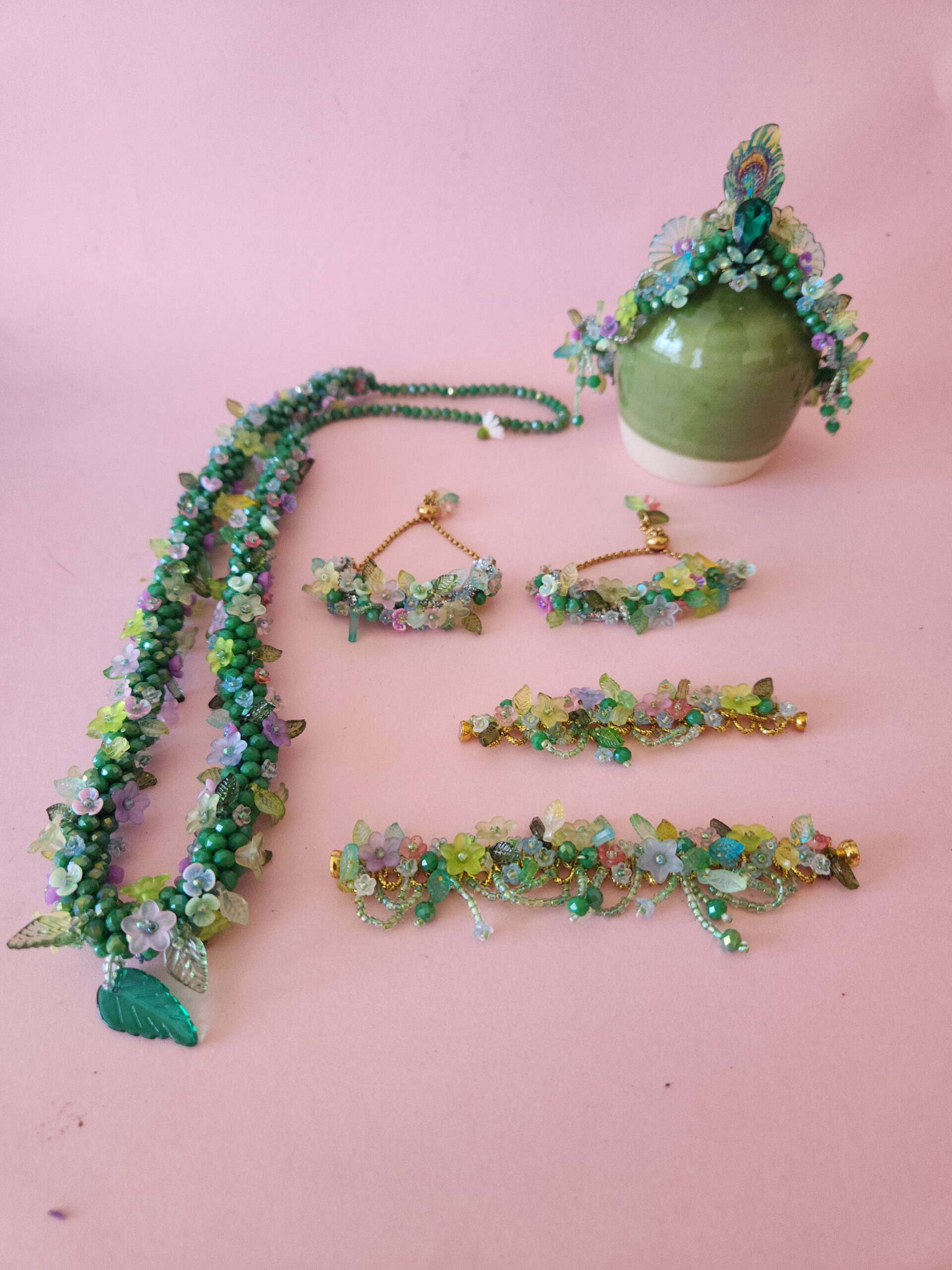 The Ever-Blooming Altar The Tulsi-Kanan (Tulsi Forest) is more than a decoration; it is a meditation on the beauty of Tulsidevi. I have curated this flower jewelry shringar to provide a high-end, “faithful backup” for those seasons when fresh Tulsi is scarce. These jewels catch the light of the temple lamps, casting a deep, serene glow across the altar that remains vibrant year-round.